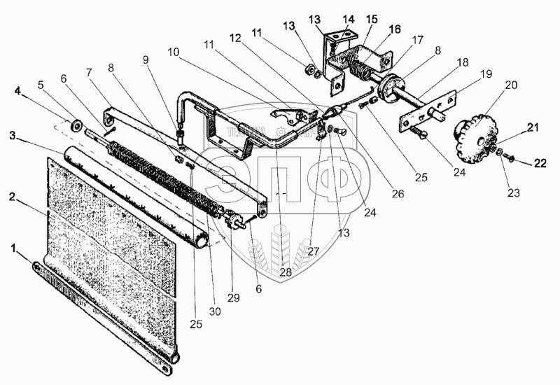 Каталог запасных частей к технике: МТЗ МЛПТ-354М. Управление шторкой, шторка
