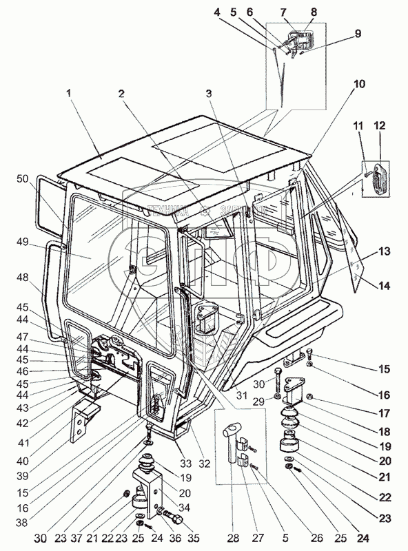 Каталог запасных частей к технике: МТЗ МЛПТ-354М. Установка кабины