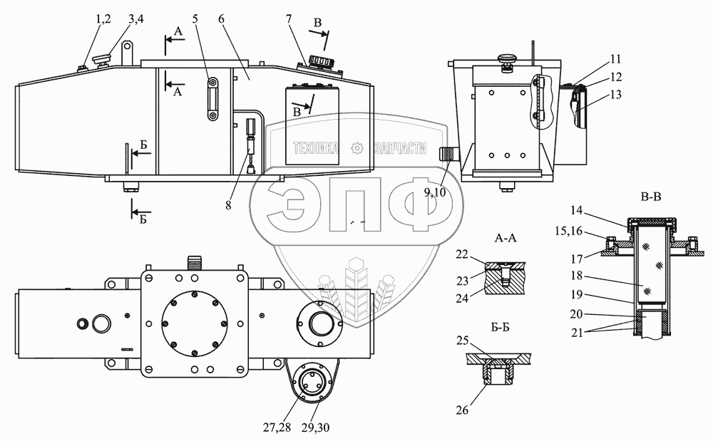 Каталог запасных частей к технике: МТЗ МР-40-01. Гидробак-опора