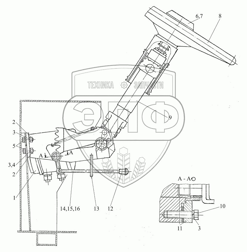 Каталог запасных частей к технике: МТЗ Ш-353М. Колонка рулевая Ш353М-3401200