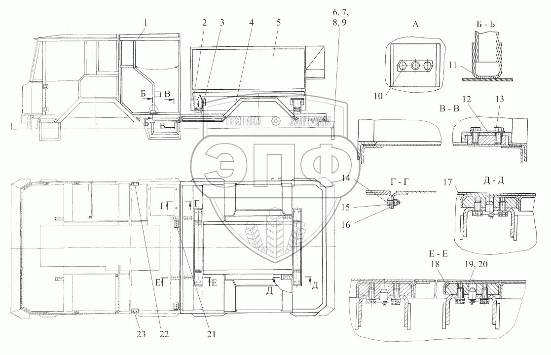 Каталог запасных частей к технике: МТЗ Ш-353М. Установка верхних строений 403М-2801000
