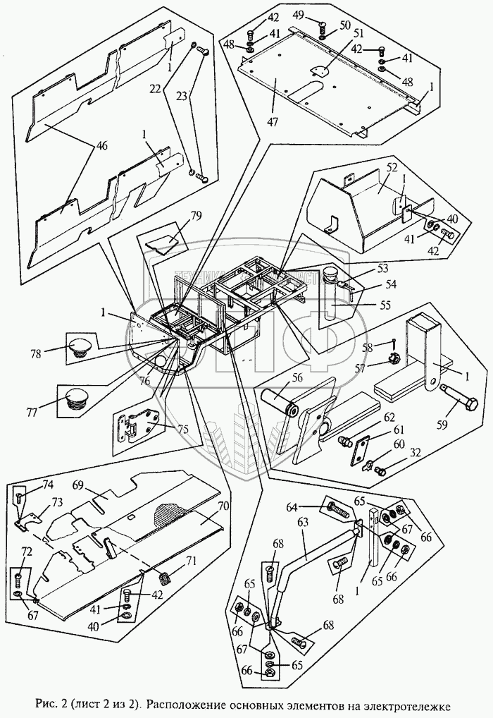Каталог запасных частей к технике: МЗИК ЭТ-2054. Расположение основных элементов на электротележке