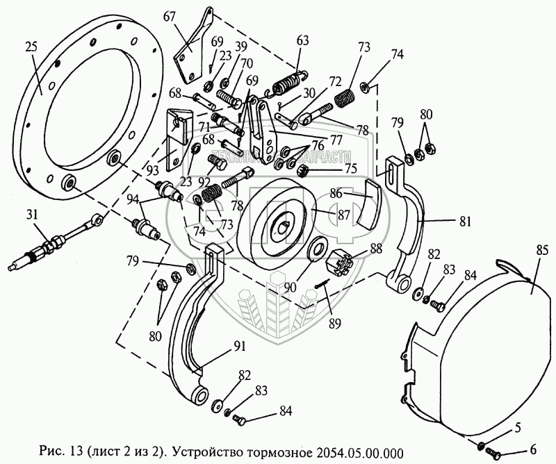 Каталог запасных частей к технике: МЗИК ЭТ-2054. Устройство тормозное