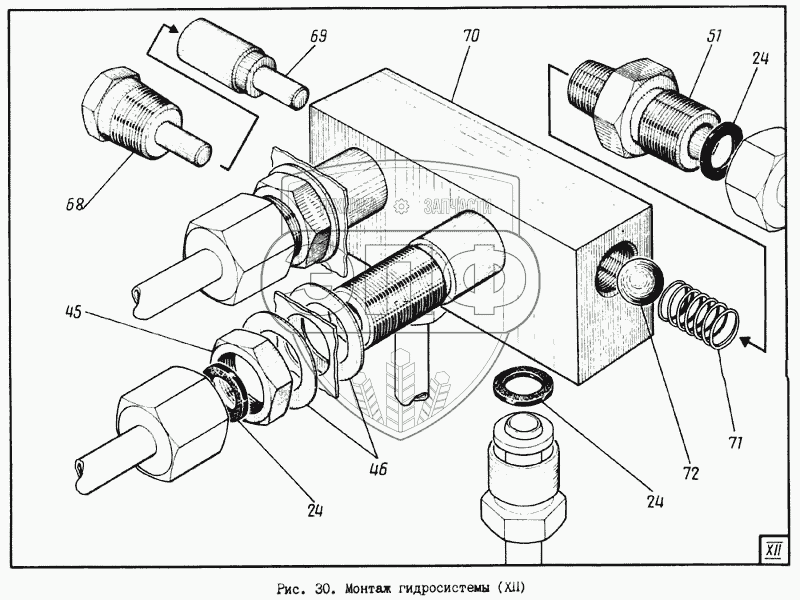 Каталог запасных частей к технике: МЗКМ КО-713. Монтаж гидросистемы