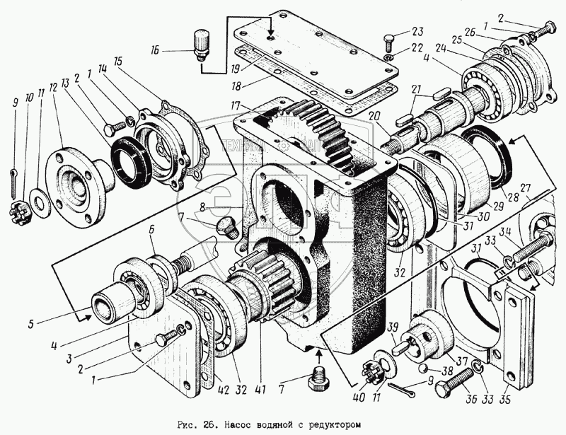 Каталог запасных частей к технике: МЗКМ КО-713. Насос водяной с редуктором