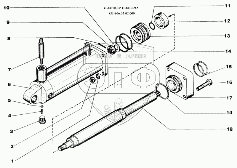 Каталог запасных частей к технике: МЗКМ КО-806. Цилиндр подъема
