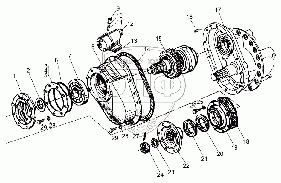 Каталог запасных частей к технике: МЗКТ-69234. Межосевой дифференциал с картером шестерен