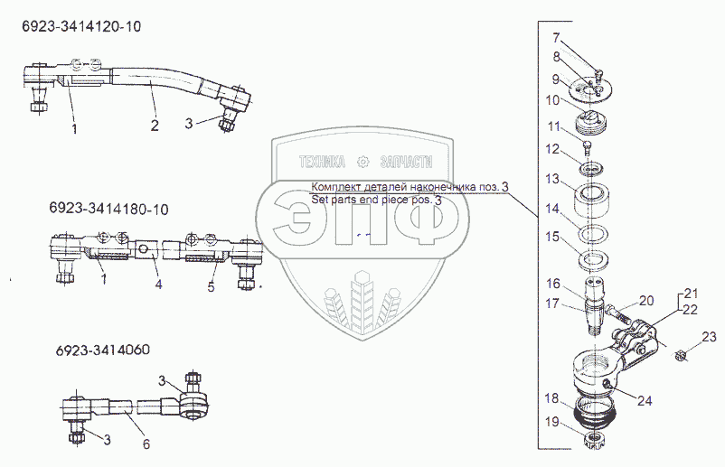 Каталог запасных частей к технике: МЗКТ-69234. Тяги и наконечники рулевого привода