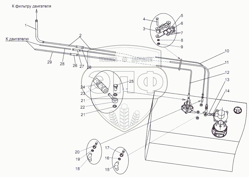 Каталог запасных частей к технике: МЗКТ-69234. Установка топливопроводов