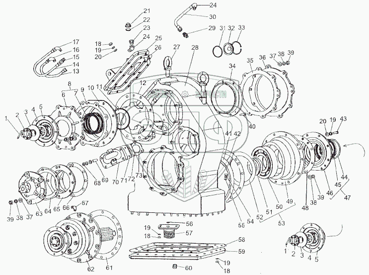Каталог запасных частей к технике: МЗКТ-80211. Картер и детали раздаточной коробки