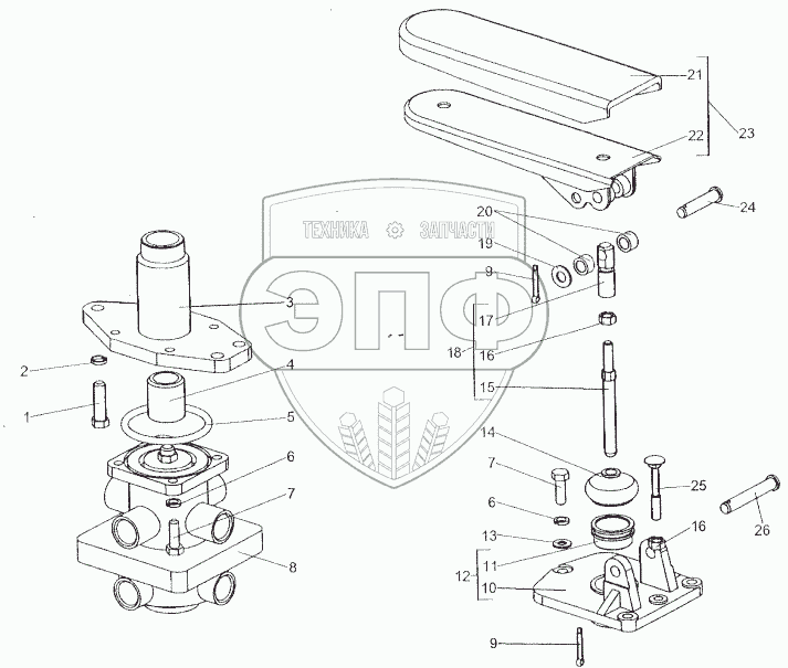 Каталог запасных частей к технике: МЗКТ-80211. Привод тормозного крана