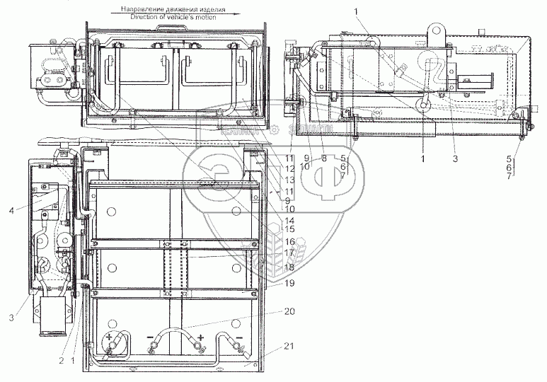 Каталог запасных частей к технике: МЗКТ-80211. Установка аккумуляторных батарей и контейнера