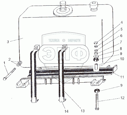 Каталог запасных частей к технике: МЗКТ-80211. Установка бака