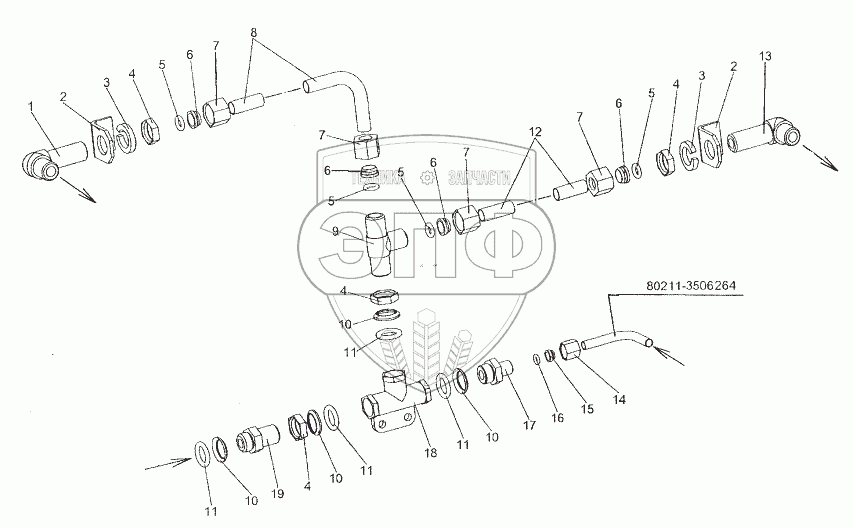 Каталог запасных частей к технике: МЗКТ-80211. Установка клапана двухмагистрального