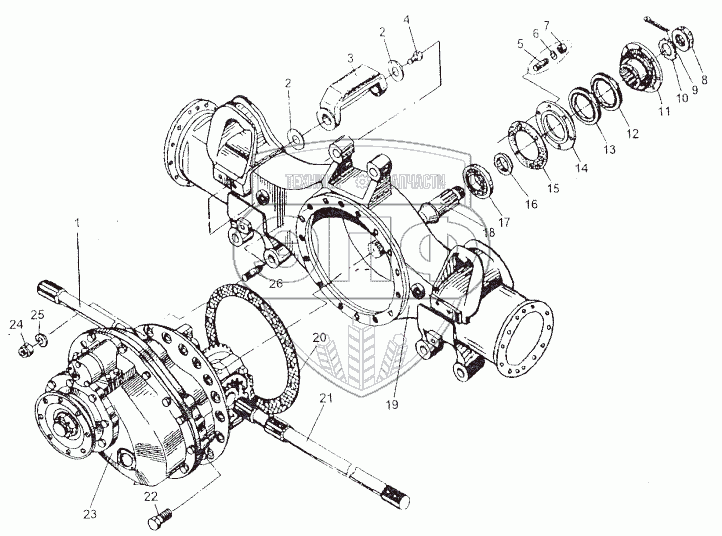 Каталог запасных частей к технике: МЗКТ-80211. Установка редуктора и заднего вала