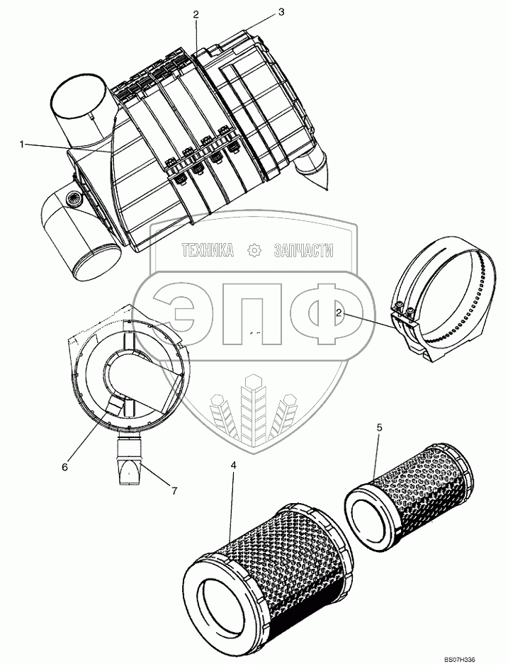 Каталог запасных частей к технике: New Holland Бульдозер D150B TIER-3. AIR CLEANER ASSY