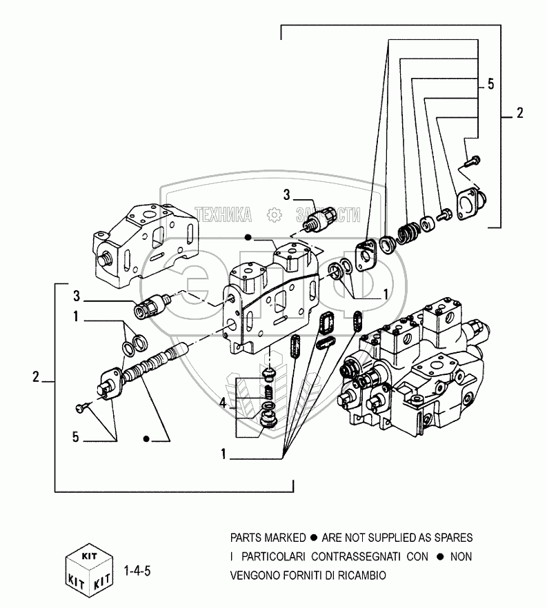 Каталог запасных частей к технике: New Holland Бульдозер D255. 3 SPOOL VALVE COMPONENTS