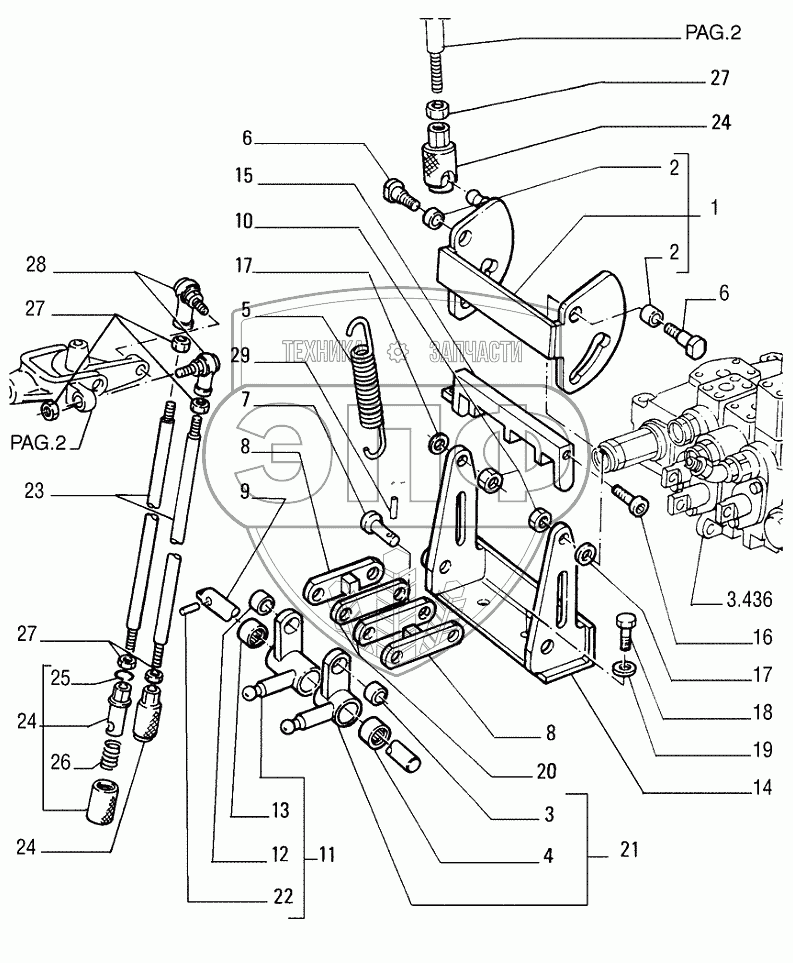 Каталог запасных частей к технике: New Holland Бульдозер D255. CONTROL VALVE LINKAGE