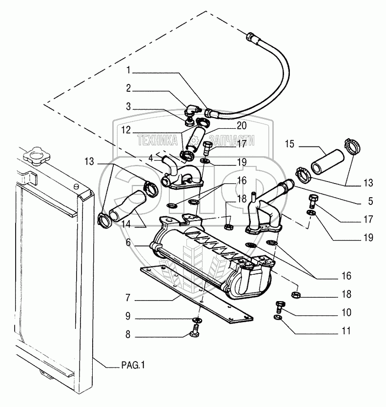 Каталог запасных частей к технике: New Holland Бульдозер D255. ENGINE COOLING SYSTEM PIPING