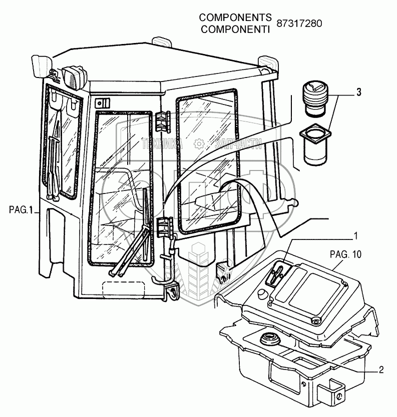 Каталог запасных частей к технике: New Holland Бульдозер D255. ROPS CAB OPTIONAL CODE 784133051