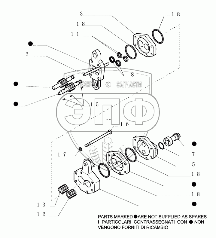 Каталог запасных частей к технике: New Holland Бульдозер D255. TRANSMISSIONCONVERTER PUMPCOMPONENTS