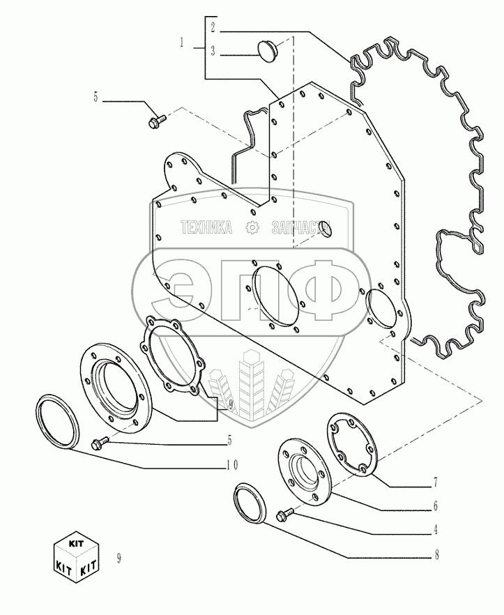 Каталог запасных частей к технике: New Holland Бульдозер D350. 0.043(04) CRANKCASE COVERS
