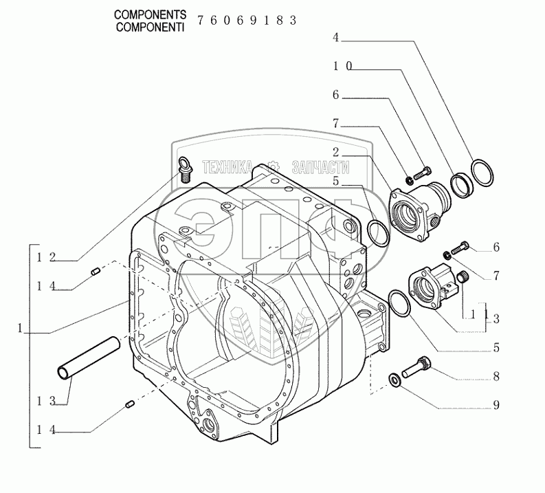 Каталог запасных частей к технике: New Holland Бульдозер D350. 1.211(02) TRANSMISSION CASE