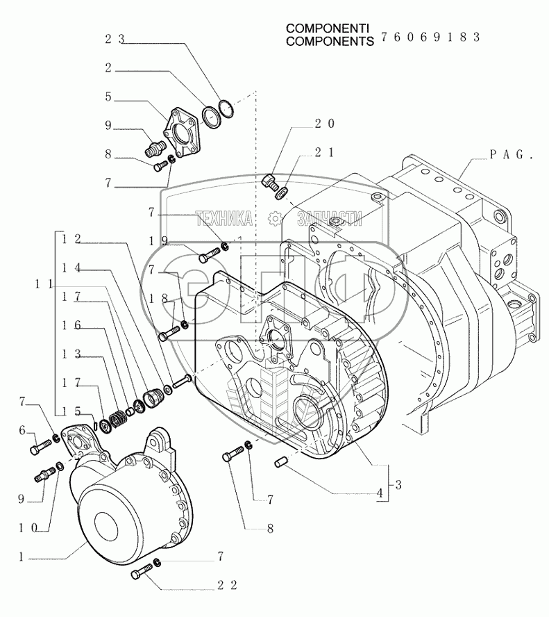 Каталог запасных частей к технике: New Holland Бульдозер D350. 1.211(03) TRANSMISSION CASE