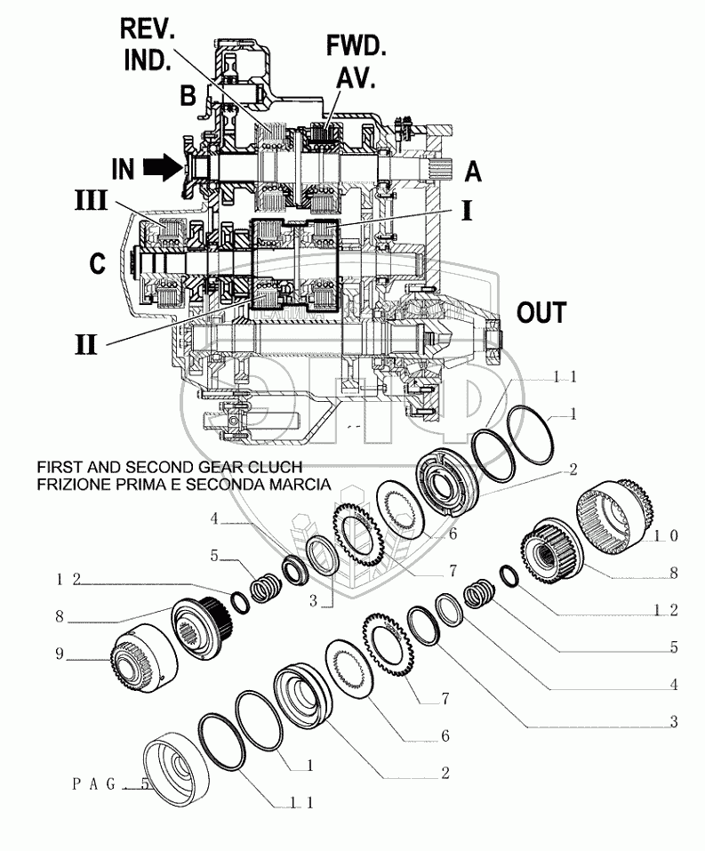 Каталог запасных частей к технике: New Holland Бульдозер D350. 1.211(09) TRANSMISSION COMPONENTS