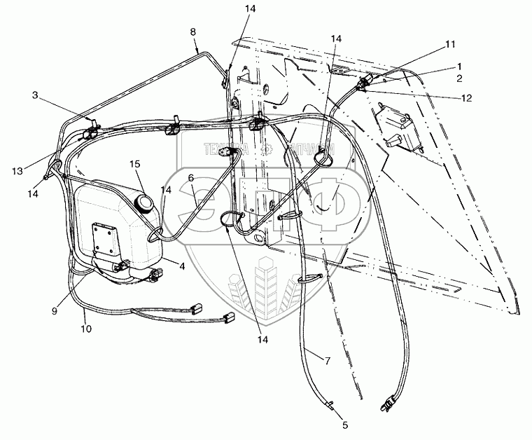 Каталог запасных частей к технике: New Holland Бульдозер D95B Tier 3. CAB WASHER, WINDSHIELD