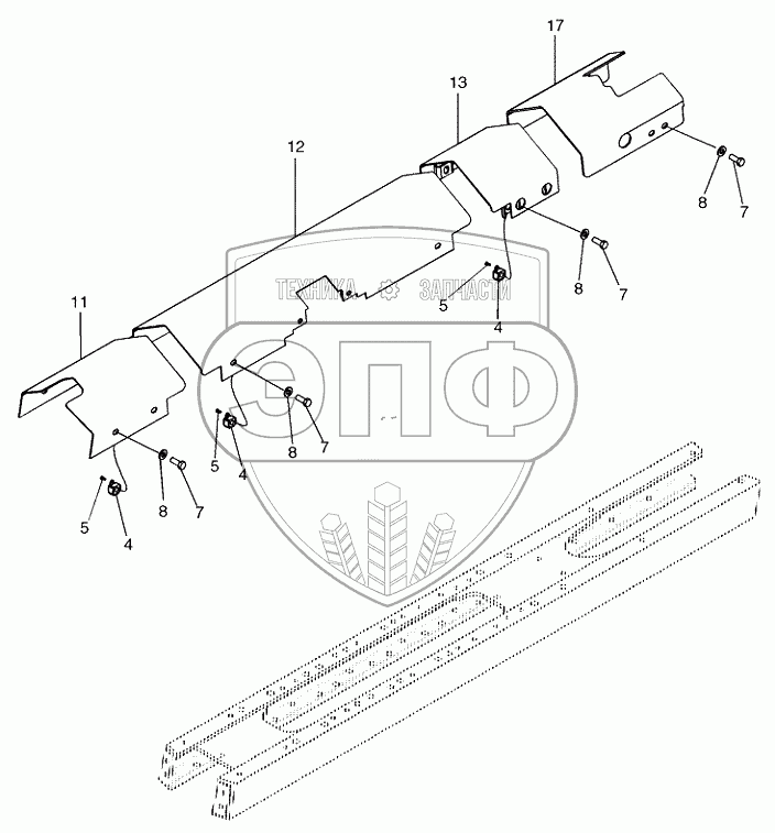 Каталог запасных частей к технике: New Holland Бульдозер D95B Tier 3. FRAME, TRACK COVERS