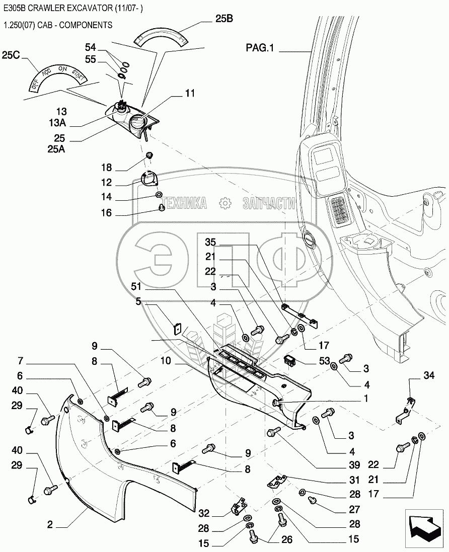 Каталог запасных частей к технике: New Holland Экскаватор E305B. Детали кабины