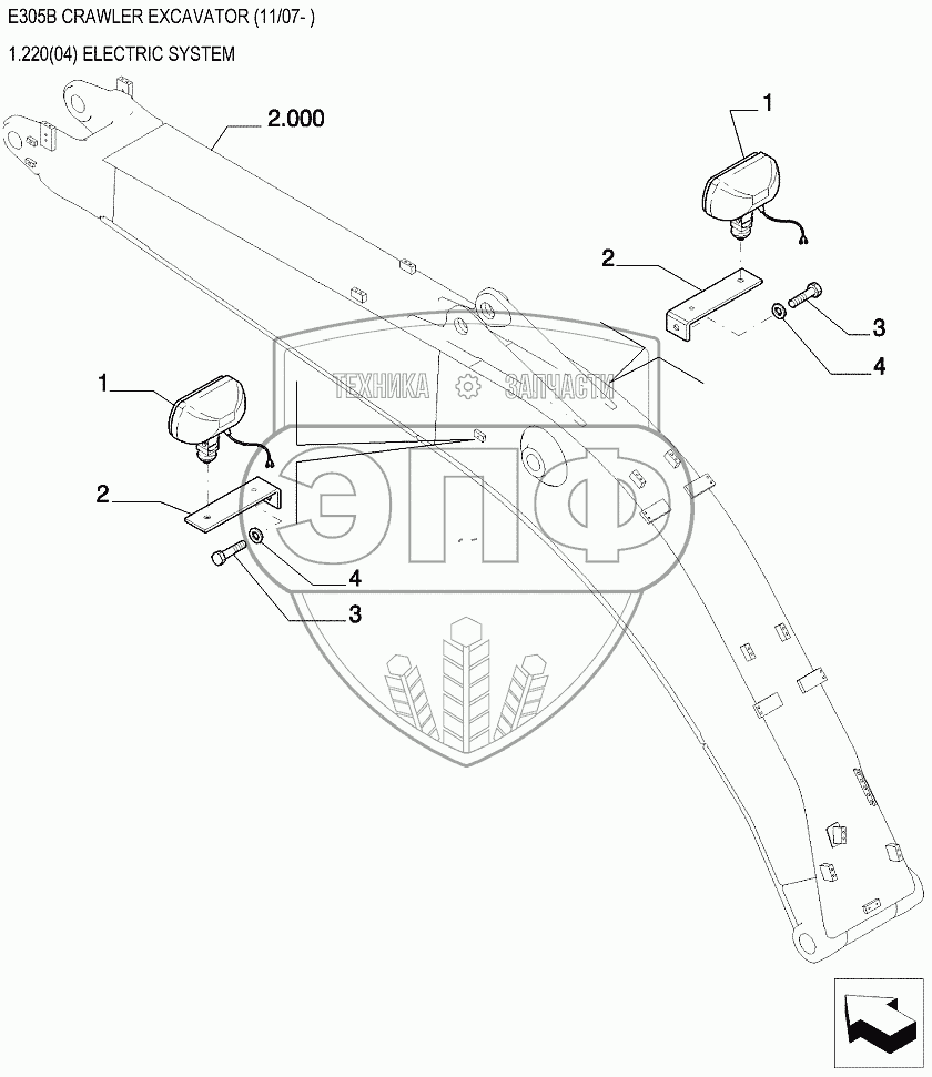Каталог запасных частей к технике: New Holland Экскаватор E305B. Электрооборудование