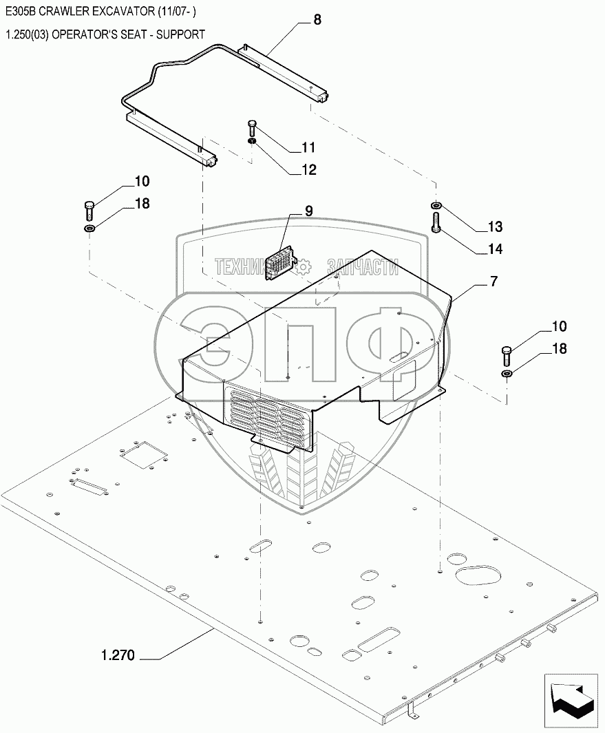 Каталог запасных частей к технике: New Holland Экскаватор E305B. Опора сиденья
