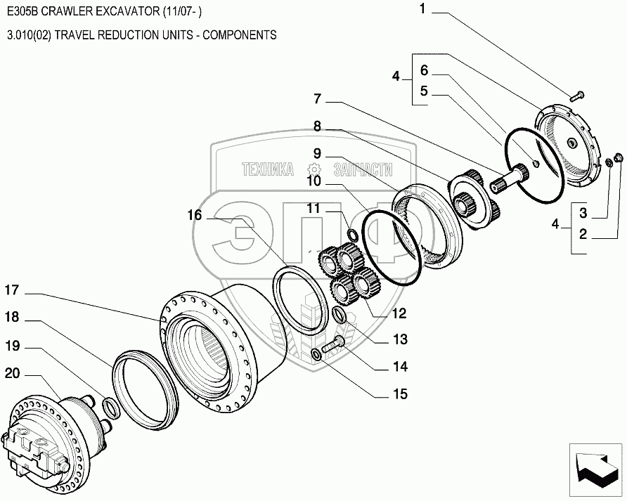 Каталог запасных частей к технике: New Holland Экскаватор E305B. Привод хода