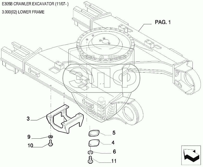 Каталог запасных частей к технике: New Holland Экскаватор E305B. Рама