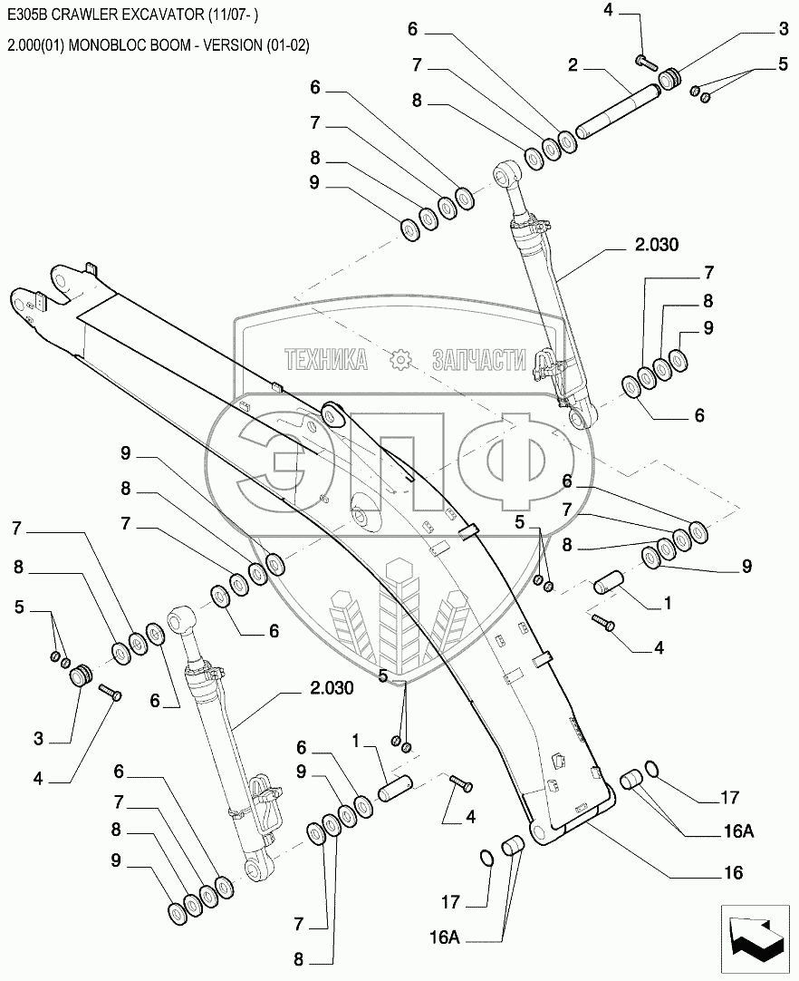 Каталог запасных частей к технике: New Holland Экскаватор E305B. Стрела