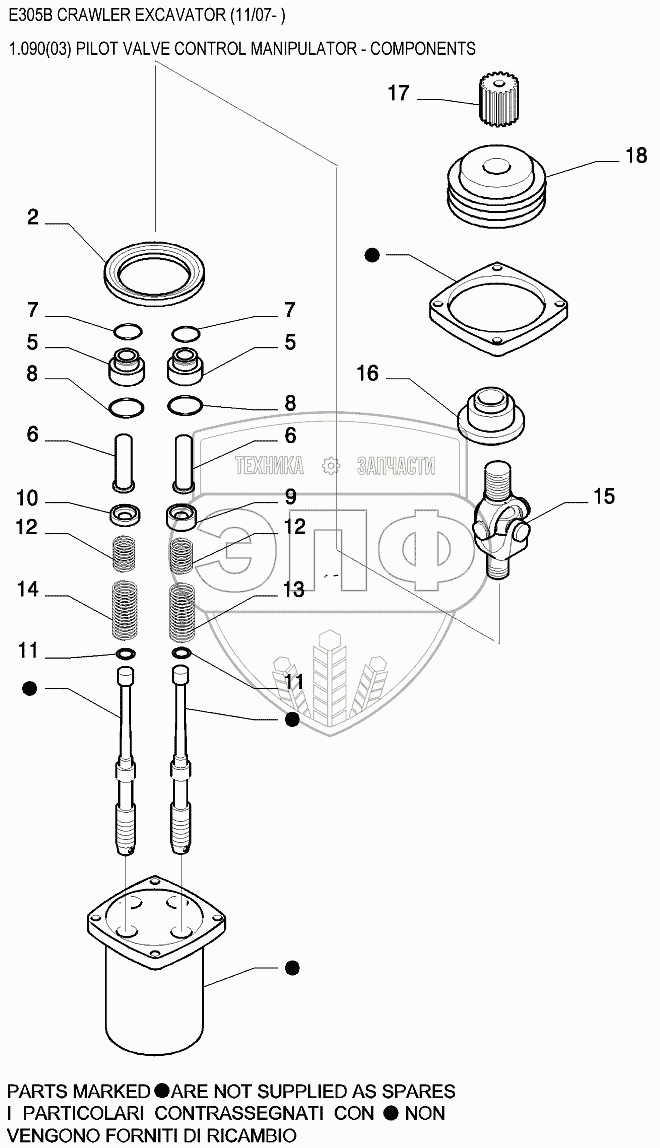 Каталог запасных частей к технике: New Holland Экскаватор E305B. Трубопроводы управления