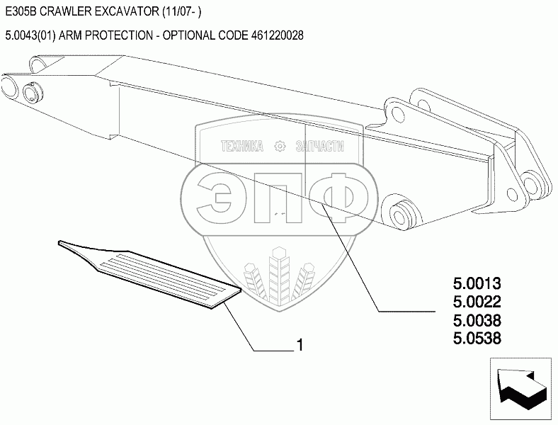 Каталог запасных частей к технике: New Holland Экскаватор E305B. Защита рукояти