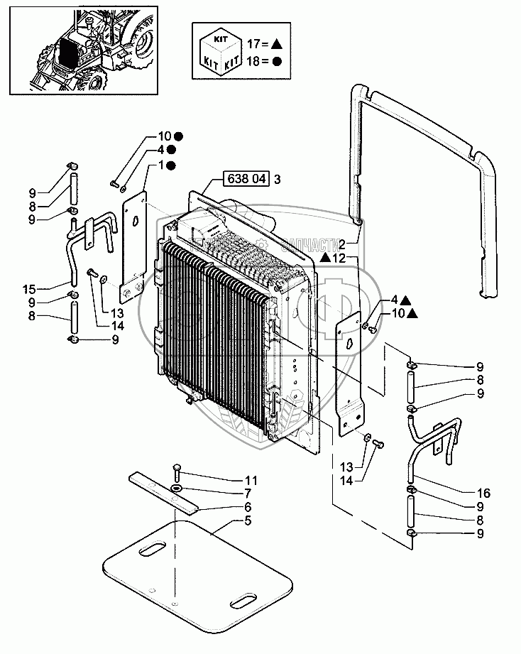 Каталог запасных частей к технике: New Holland Экскаватор LB110B (часть 1). Радиатор
