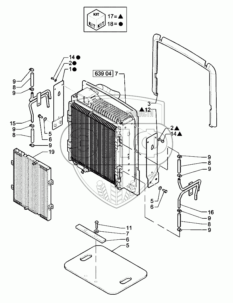 Каталог запасных частей к технике: New Holland Экскаватор LB110B (часть 1). Радиатор