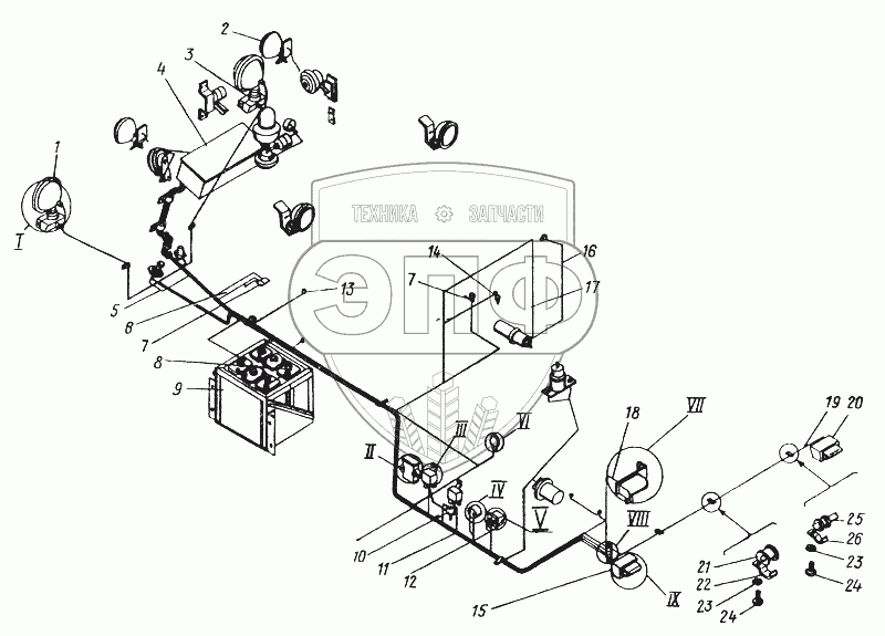 Каталог запасных частей к технике: ОЗП ТО-30. ТО-30.42.00.000. Электросистема
