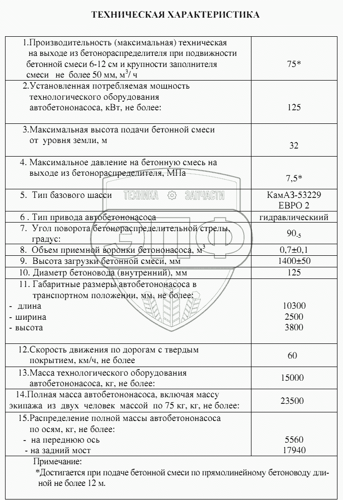 Каталог запасных частей к технике: ПАО "ТЗА" Автобетононасос 581532. Технические характеристики