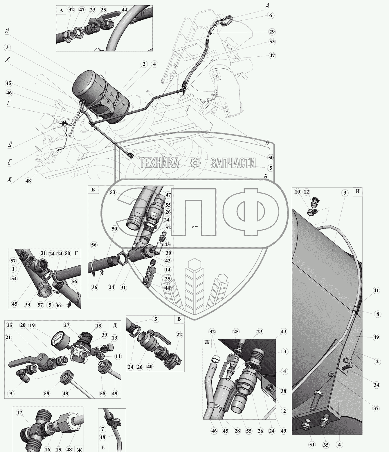 Каталог запасных частей к технике: ПАО "ТЗА" Автобетоносмеситель 58147С. Система подачи воды
