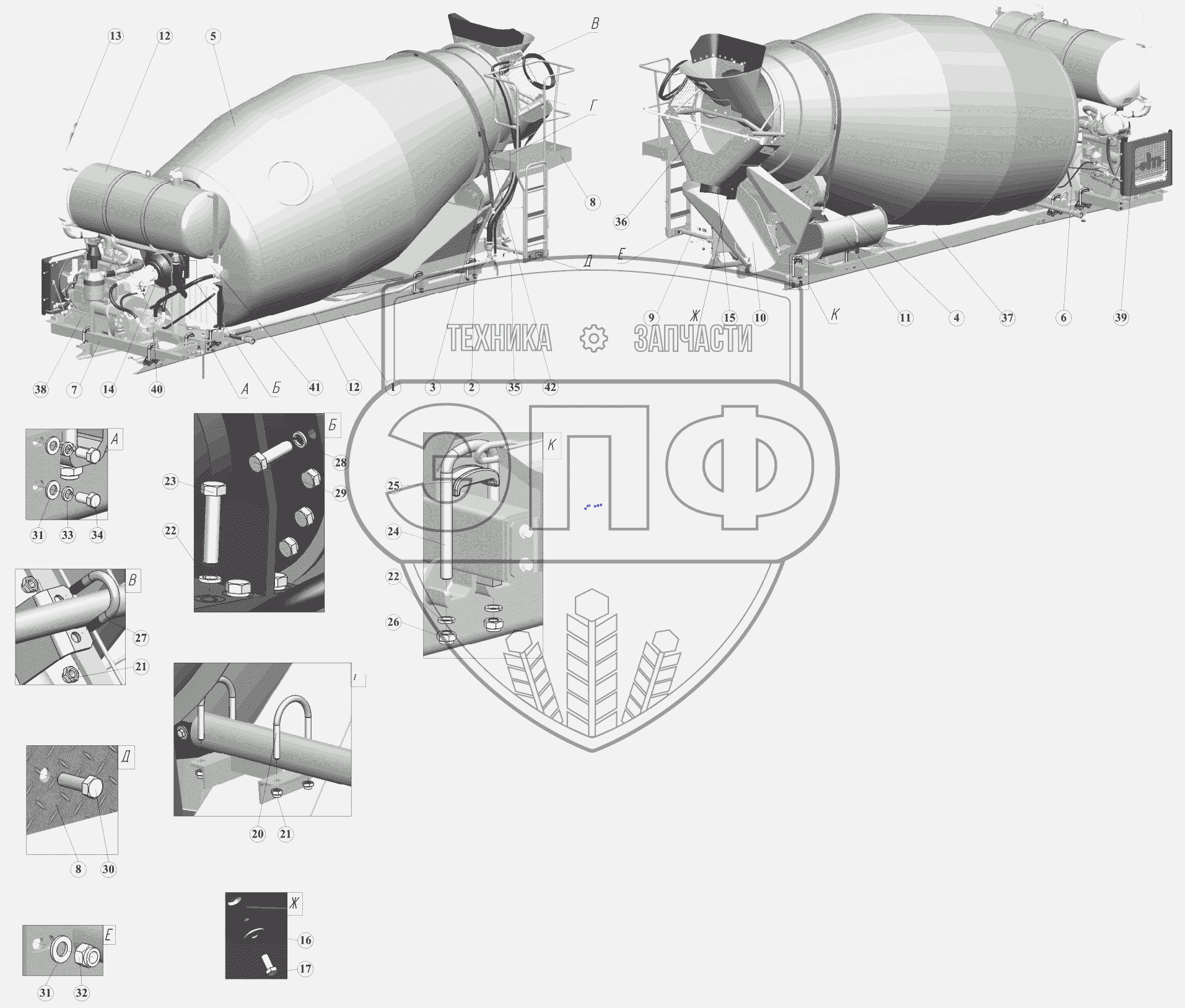 Каталог запасных частей к технике: ПАО "ТЗА" Автобетоносмеситель 58149Z. Бетоносмеситель