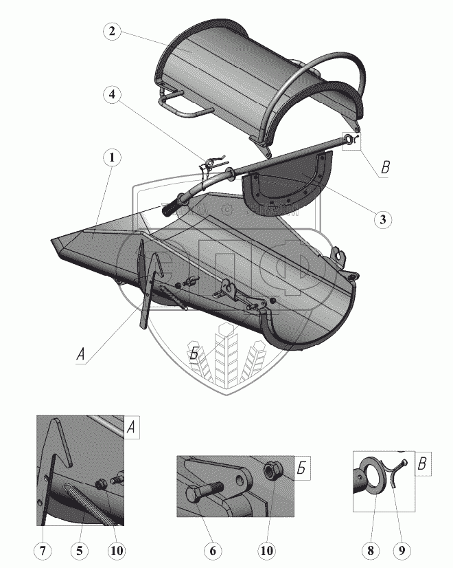 Каталог запасных частей к технике: ПАО "ТЗА" Автобетоносмеситель 58149Z. Лоток в сборе