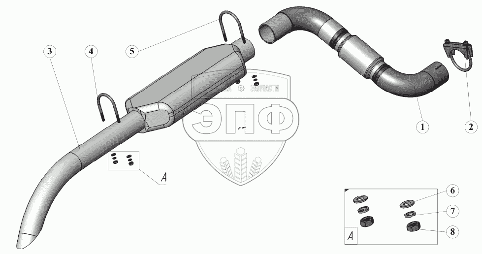 Каталог запасных частей к технике: ПАО "ТЗА" Автобетоносмеситель 58149Z. Установка глушителя