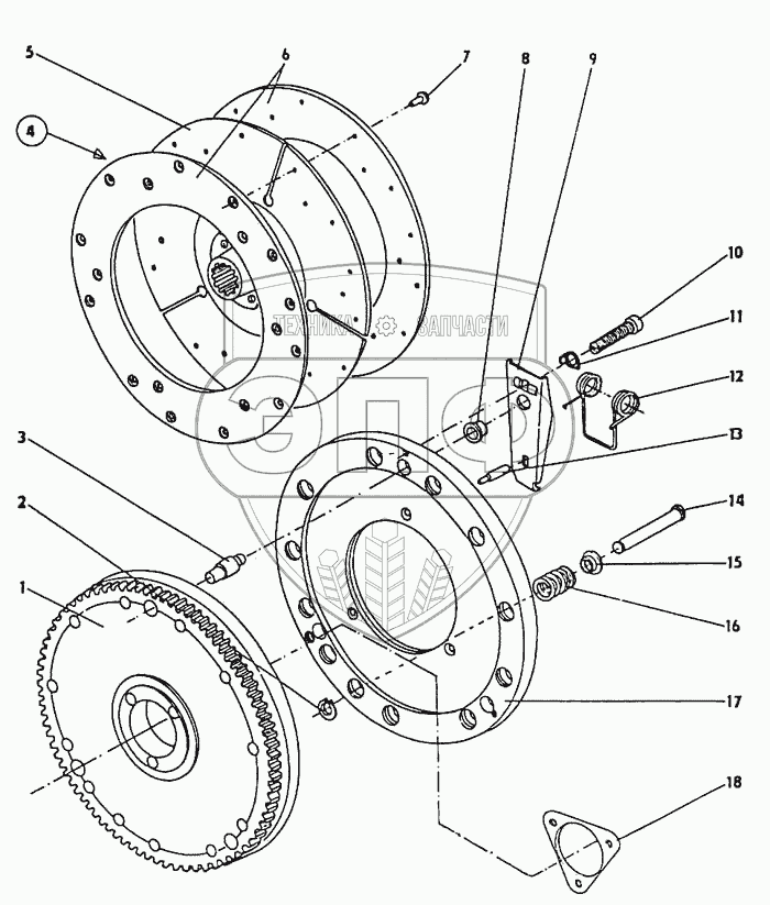 Каталог запасных частей к технике: ППС Детва УНС-061. Маховик с сцеплением