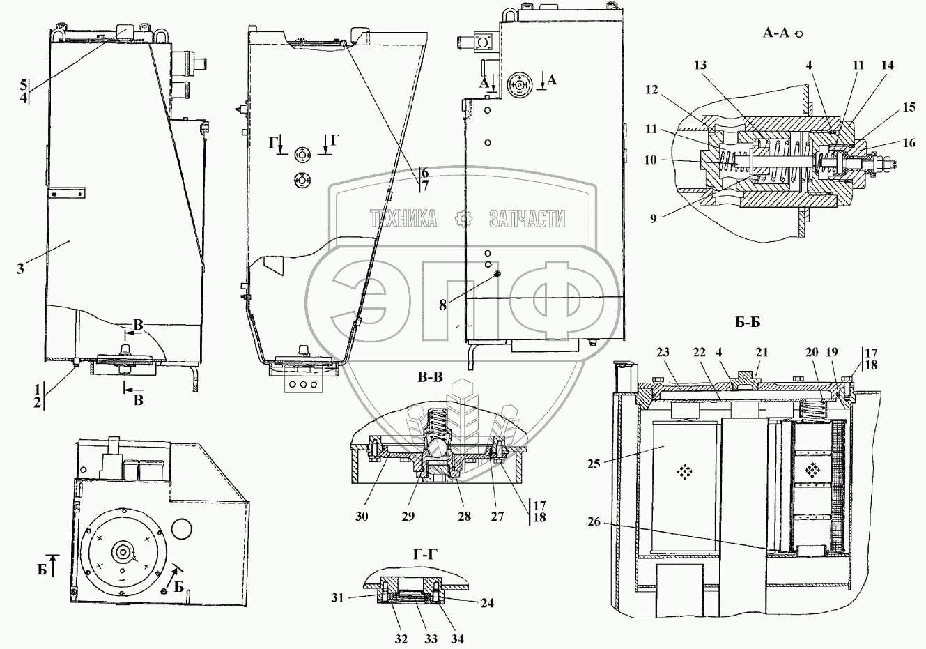 Каталог запасных частей к технике: Промтрактор ПК-12.02К. Бак гидросистемы