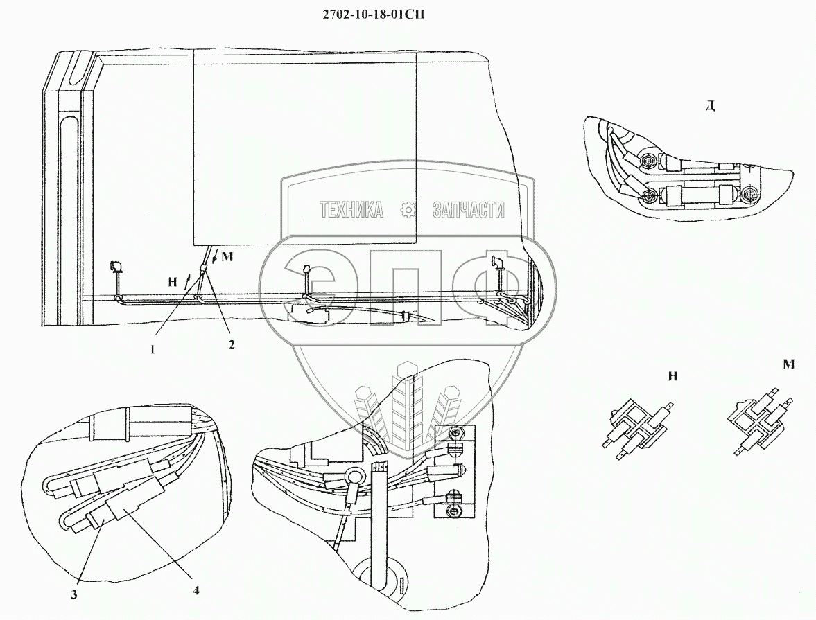 Каталог запасных частей к технике: Промтрактор ПК-12.02К. Электрооборудование крыши кабины